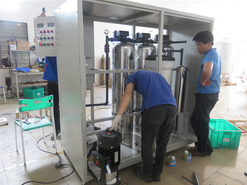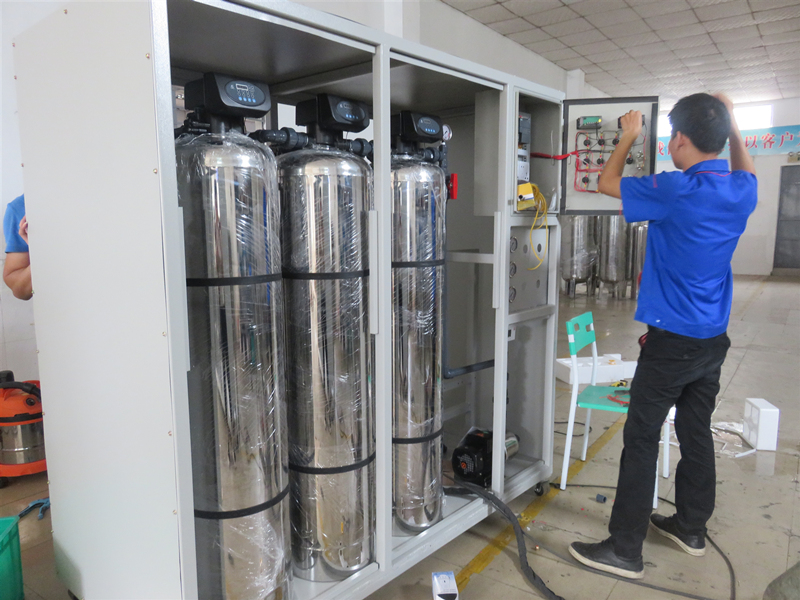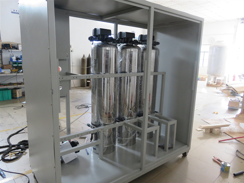 帶滾輪1噸可移動柜式反滲透純水設備組裝