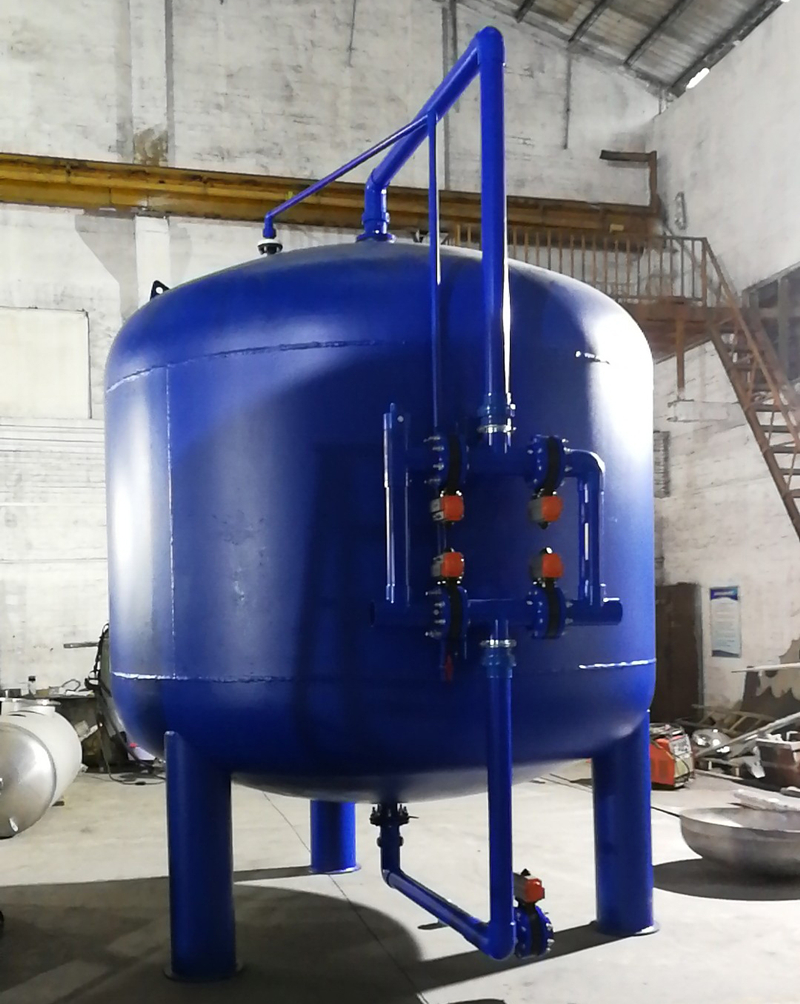 石英砂過濾器,學名淺層介質(zhì)過濾器,它是利用石英砂作為過濾介質(zhì),在一定的壓力下,把濁度較高的水通過一定厚度的粒狀或非粒的石英砂過濾,有效的截留除去水中的懸浮物、有機物、膠質(zhì)顆粒、微生物、氯、嗅味及部分重金屬離子等,達到降低水濁度、凈化水質(zhì)效果的一種高效過濾設備。