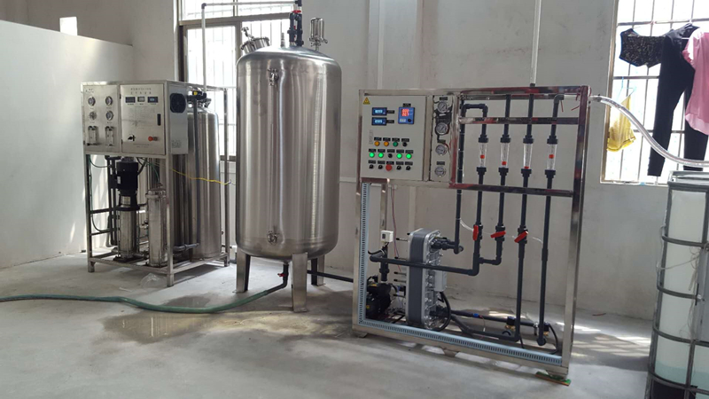 3、后處理部分是對反滲透制取的純水作進一步的深化處理以制取超純水,通常是離子交換混床設備或EDI設備,根據客戶要求,出水阻率可達到18.2MΩ.CM,如果是應用在直飲水工藝上,則加上殺菌裝置即可,通常為紫外線殺菌器或者臭氧發生器,從而使生產出來的水達到直飲標準。