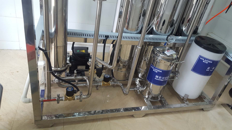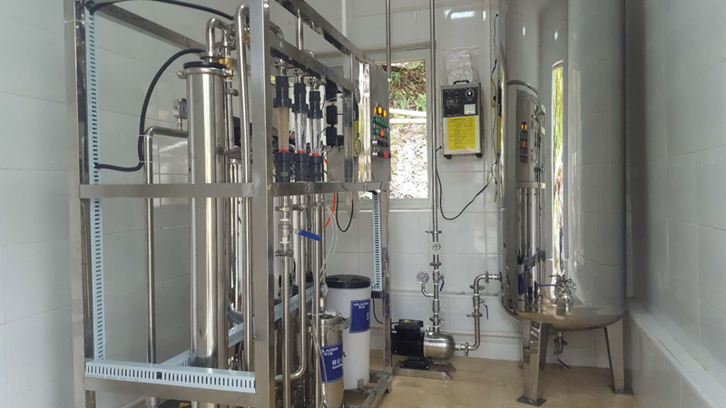 4、原水-原水加壓泵-多介質過濾器-活性炭過濾器-軟水器-精密過濾器-第一級反滲透 -PH調節-中間水箱-第二級反滲透(反滲透膜表面帶正電荷)-RO水箱-RO水泵-TOC分解器-EDI系統-純化水箱-純水泵-紫外線殺菌器-微孔過濾器-巴氏消毒-用水點 (中國藥典注射用水、歐盟和美國藥典推薦工藝)