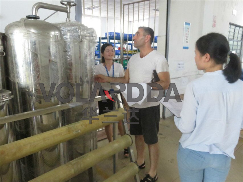 國(guó)外客戶參觀工廠,工作人員現(xiàn)場(chǎng)解說(shuō),客戶隨后訂購(gòu)一臺(tái)純水設(shè)備